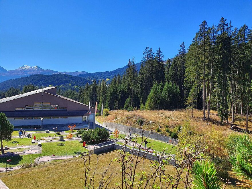 Coming from Chur, turn left at the valley station of the Rothorn mountain railway. After about 600 m, it's located on the left.